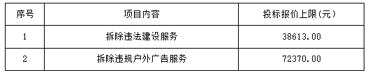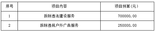 1. 項(xiàng)目名稱:陽江市江城區(qū)綜合行政執(zhí)法局2025年拆除違法建設(shè)和違規(guī)戶外廣告服務(wù)資格采購項(xiàng)目(二次招標(biāo))
