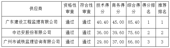 注:廣東悉筑建筑設(shè)計(jì)有限公司不滿足資格性審查條款,作無效投標(biāo)處理。