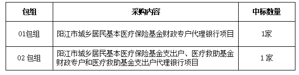 1. 項(xiàng)目名稱:陽(yáng)江市城鄉(xiāng)居民醫(yī)療保險(xiǎn)基金和醫(yī)療救助基金代理銀行采購(gòu)項(xiàng)目(二次招標(biāo))