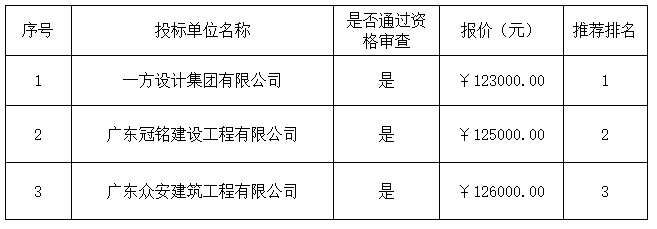 報價結果:最終詢價小組一致推薦一方設計集團有限公司為成交單位,成交金額為人民幣123000.00元(大寫金額:壹拾貳萬叁仟元整)。