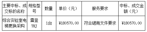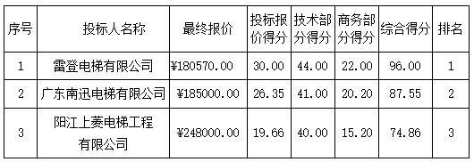 磋商結(jié)果:最終磋商小組一致推薦 雷登電梯有限公司 為成交單位,成交金額為人民幣 180570.00元,(大寫金額: 壹拾捌萬(wàn)零伍佰柒拾元整 )。