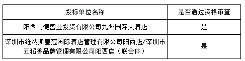 1.成交供應(yīng)商名稱:陽(yáng)西縣德盛業(yè)投資有限公司九州國(guó)際大酒店