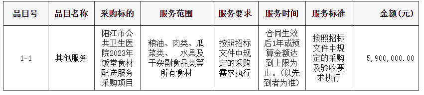 陽(yáng)江市公共衛(wèi)生醫(yī)院2023年飯?zhí)檬巢呐渌头?wù)采購(gòu)項(xiàng)目