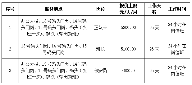 1.項(xiàng)目名稱:陽江市陽江港廣泰隆碼頭有限公司保安服務(wù)采購項(xiàng)目(預(yù)算詢價(jià))