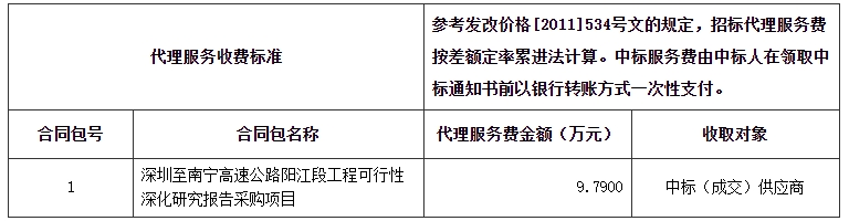 合同包1(深圳至南寧高速公路陽江段工程可行性深化研究報(bào)告采購項(xiàng)目):