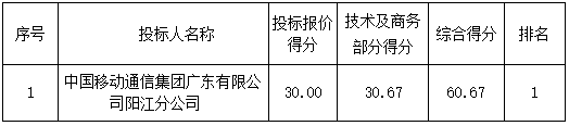成交供應(yīng)商名稱:中國移動通信集團(tuán)廣東有限公司陽江分公司