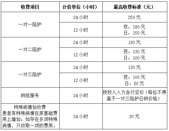 2)陪護服務費報價:
