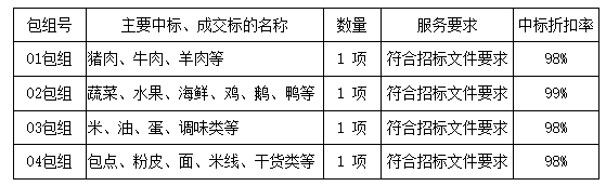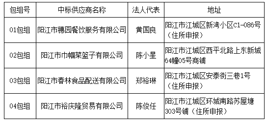 01包組:最終評標(biāo)委員會一致推薦 陽江市穗園餐飲服務(wù)有限公司 為中標(biāo)單位,中標(biāo)折扣率為 98% 。