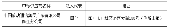 投標結(jié)果:最終評標委員會一致推薦 中國移動通信集團廣東有限公司陽江分公司 為中標單位,中標金額為人民幣 559535.00 元,(大寫金額: 伍拾伍萬玖仟伍佰叁拾伍元整 )。