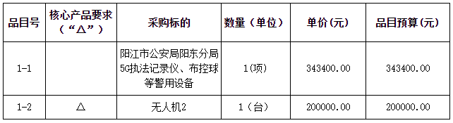 1. 項(xiàng)目名稱:陽江市公安局陽東分局5G執(zhí)法記錄儀、布控球等警用設(shè)備采購項(xiàng)目