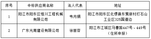 1. 陽江市陽東區(qū)恒川工程機(jī)械有限公司 ;