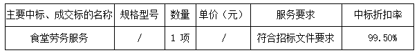 廣東業(yè)信采購(gòu)招標(biāo)有限公司受 陽(yáng)江市陽(yáng)東區(qū)華南師范大學(xué)附屬陽(yáng)東小學(xué) 的委托,于2024年12月23日就 陽(yáng)江市陽(yáng)東區(qū)華南師范大學(xué)附屬陽(yáng)東小學(xué)食堂勞務(wù)服務(wù)項(xiàng)目 (項(xiàng)目編號(hào):YXCG-20241201)采用公開(kāi)招標(biāo)方式進(jìn)行采購(gòu)?,F(xiàn)就本次采購(gòu)的中標(biāo)結(jié)果公告如下: