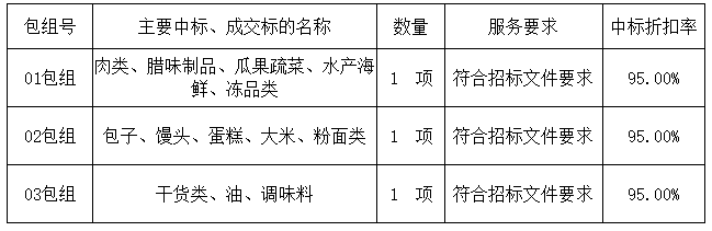 03包組:最終評標委員會一致推薦陽江市巾幗菜籃子有限公司為中標單位,中標折扣率為95.00%。