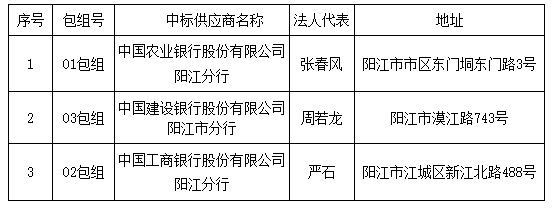 03包組: 中國(guó)建設(shè)銀行股份有限公司陽(yáng)江市分行 。