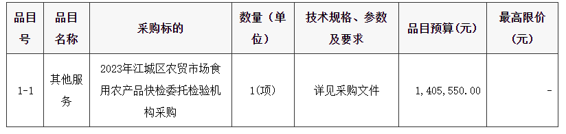 陽江市市場(chǎng)監(jiān)督管理局江城分局2023年江城區(qū)農(nóng)貿(mào)市場(chǎng)食用農(nóng)產(chǎn)品快檢委托檢驗(yàn)機(jī)構(gòu)采購項(xiàng)目