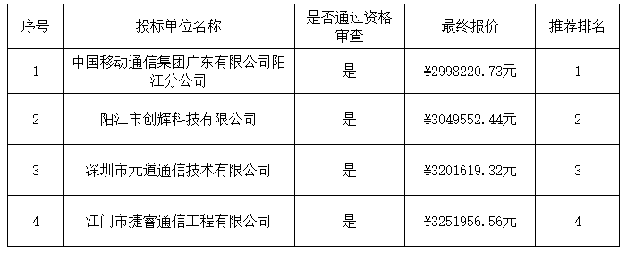 成交供應(yīng)商名稱:中國(guó)移動(dòng)通信集團(tuán)廣東有限公司陽江分公司