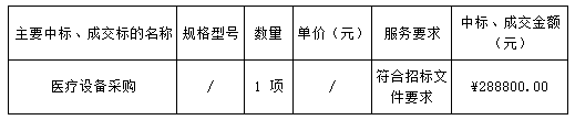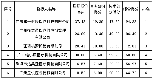 投標結果:最終評標委員會一致推薦 廣東和一渡康醫(yī)療科技有限公司 為中標單位,中標金額為人民幣 288800.00 元,(大寫金額: 貳拾捌萬捌仟捌佰元整 )。