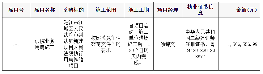 合同包1(陽(yáng)江市江城區(qū)人民法院審判法庭新建項(xiàng)目人民法院執(zhí)行用房修繕項(xiàng)目):
