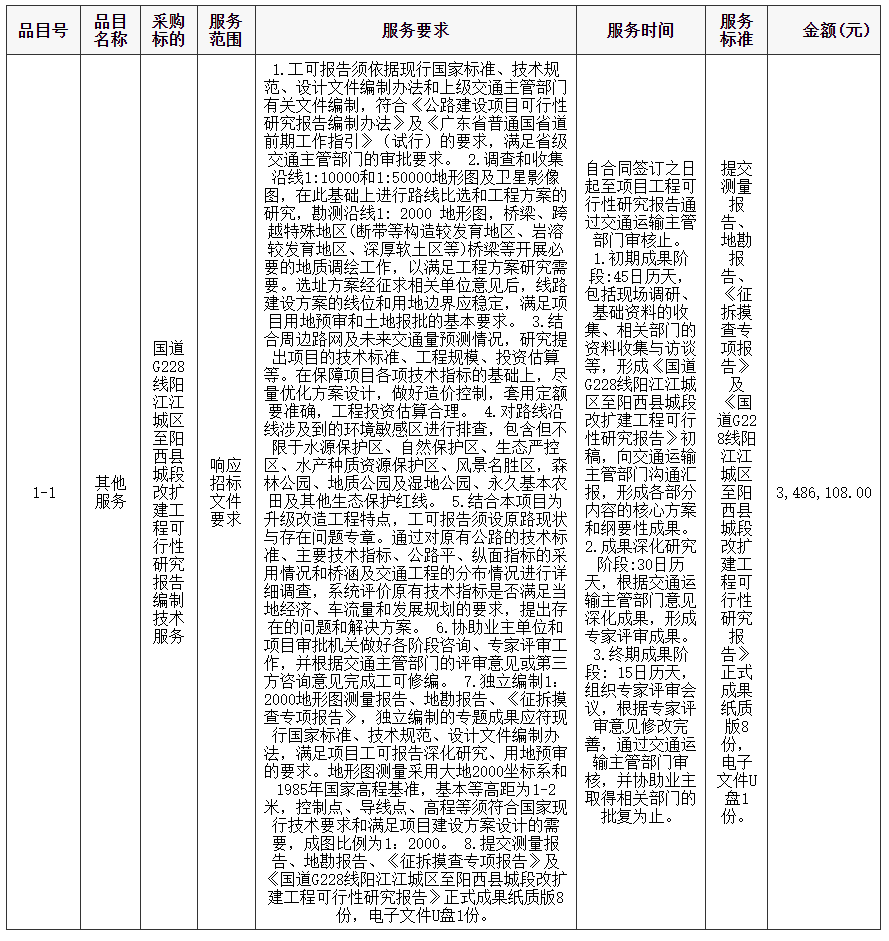 合同包1(國道G228線陽江江城區(qū)至陽西縣城段改擴建工程可行性研究報告編制技術(shù)服務):
