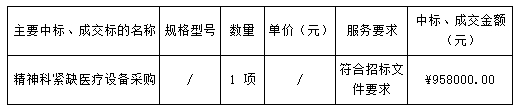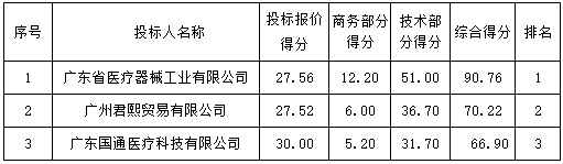 投標(biāo)結(jié)果:最終評(píng)標(biāo)委員會(huì)一致推薦 廣東省醫(yī)療器械工業(yè)有限公司 為中標(biāo)單位,中標(biāo)金額為人民幣 958000.00 元,(大寫金額: 玖拾伍萬捌仟元整 )。