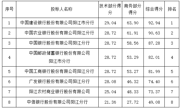 廣東業(yè)信采購招標(biāo)有限公司受 陽江市物業(yè)和房屋租賃管理所 的委托,于2024年12月17日就 2025-2027年陽江市市區(qū)住宅專項維修資金專戶管理銀行服務(wù)項目 (項目編號:YXCG-20241105)采用公開招標(biāo)方式進(jìn)行采購?,F(xiàn)就本次采購的中標(biāo)結(jié)果公告如下: