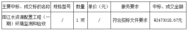 二、采購項(xiàng)目名稱:陽江水資源配置工程(一期)環(huán)境監(jiān)測和驗(yàn)收