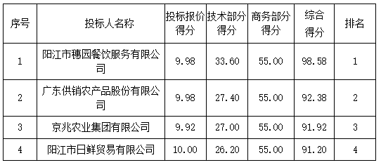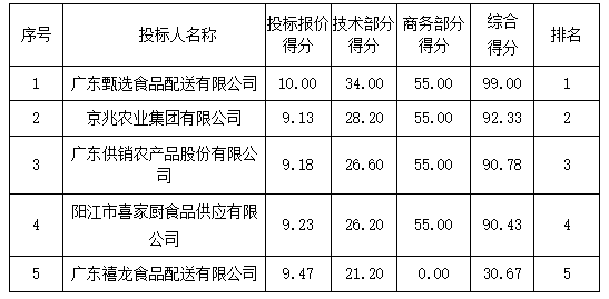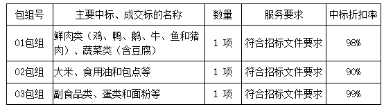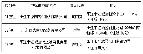 01包組:最終評(píng)標(biāo)委員會(huì)一致推薦 陽(yáng)江市穗園餐飲服務(wù)有限公司 為中標(biāo)單位,中標(biāo)折扣率為 98% 。