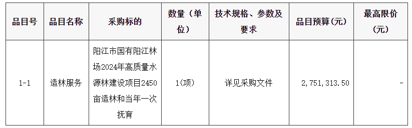 項目名稱:陽江市國有陽江林場2024年高質(zhì)量水源林建設(shè)項目