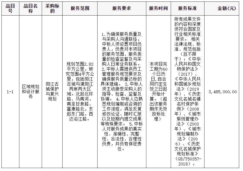 合同包1(陽江古城保護(hù)與復(fù)興規(guī)劃):