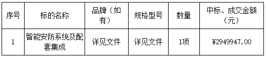 廣東業(yè)信招標有限公司受 廣東晉峰建設工程有限公司 的委托,于2025年6月25日就 廣東晉峰建設工程有限公司智能安防系統(tǒng)及配套集成項目 (項目編號:YXZB-20250617)采用公開比選方式進行采購?,F(xiàn)就本次采購的成交結果公告如下: