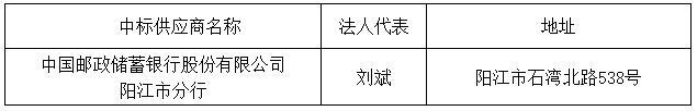投標(biāo)結(jié)果:最終評(píng)標(biāo)委員會(huì)一致推薦中國(guó)郵政儲(chǔ)蓄銀行股份有限公司陽(yáng)江市分行為中標(biāo)單位。