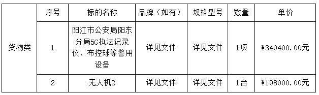 二、采購項目名稱:陽江市公安局陽東分局5G執(zhí)法記錄儀、布控球等警用設(shè)備采購項目