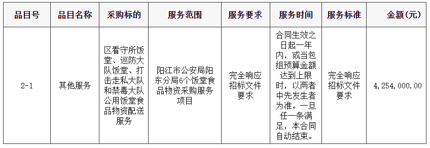 陽(yáng)江市公安局陽(yáng)東分局6個(gè)飯?zhí)檬称肺镔Y采購(gòu)服務(wù)項(xiàng)目
