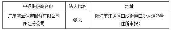 注:廣東海云保安服務(wù)有限公司陽江分公司、中曦防務(wù)(廣東)保安服務(wù)有限公司、廣州惠豐保安服務(wù)有限公司、廣東警興保安服務(wù)有限公司提供《中小微企業(yè)聲明函》,為小型企業(yè),價格扣除10%。