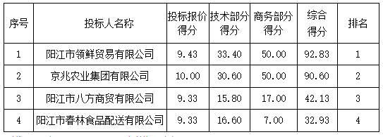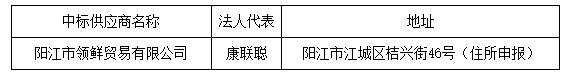 投標結(jié)果:最終評標委員會一致推薦 陽江市領(lǐng)鮮貿(mào)易有限公司 為中標單位,中標折扣率為 94.00% 。
