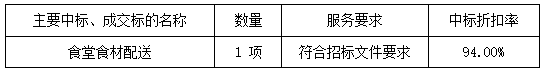 廣東業(yè)信采購招標有限公司受 陽江市江城第六小學(xué) 的委托,于2024年8月29日就 陽江市江城第六小學(xué)食堂食材配送招標項目(項目編號:YXCG-20240807)采用公開招標方式進行采購?,F(xiàn)就本次采購的中標結(jié)果公告如下: