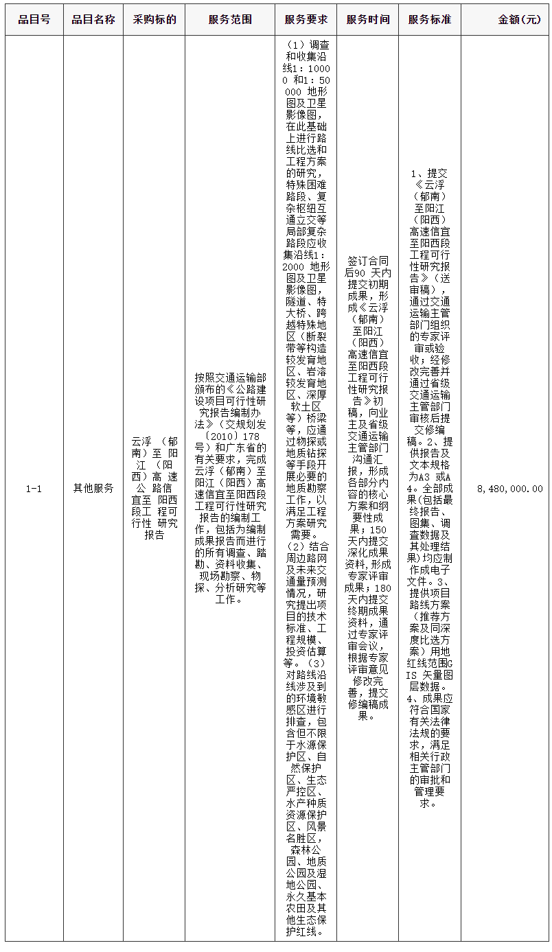 合同包1(云浮(郁南)至陽(yáng)江(陽(yáng)西)高速公路信宜至陽(yáng)西段工程可行性研究報(bào)告采購(gòu)項(xiàng)目):