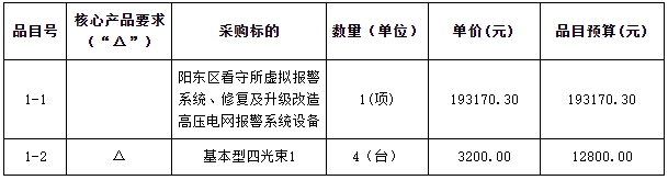 1. 項(xiàng)目名稱:陽東區(qū)看守所虛擬報(bào)警系統(tǒng)、修復(fù)及升級改造高壓電網(wǎng)報(bào)警系統(tǒng)設(shè)備項(xiàng)目