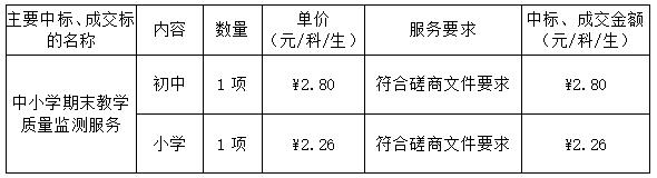 成交金額:初中為人民幣2.80元/科/生,小學(xué)為人民幣2.26元/科/生