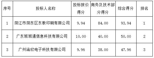 磋商結(jié)果:最終磋商小組一致推薦 陽江市陽東區(qū)東教印刷有限公司 為成交單位,成交金額初中為人民幣2.80元/科/生,小學(xué)為人民幣2.26元/科/生。