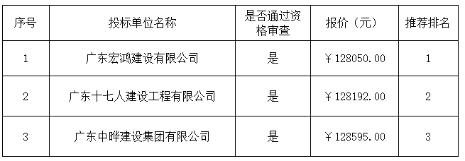 報價結(jié)果:最終詢價小組一致推薦廣東宏鴻建設(shè)有限公司為成交單位,成交金額為人民幣128050.00元(大寫金額:壹拾貳萬捌仟零伍拾元整)。